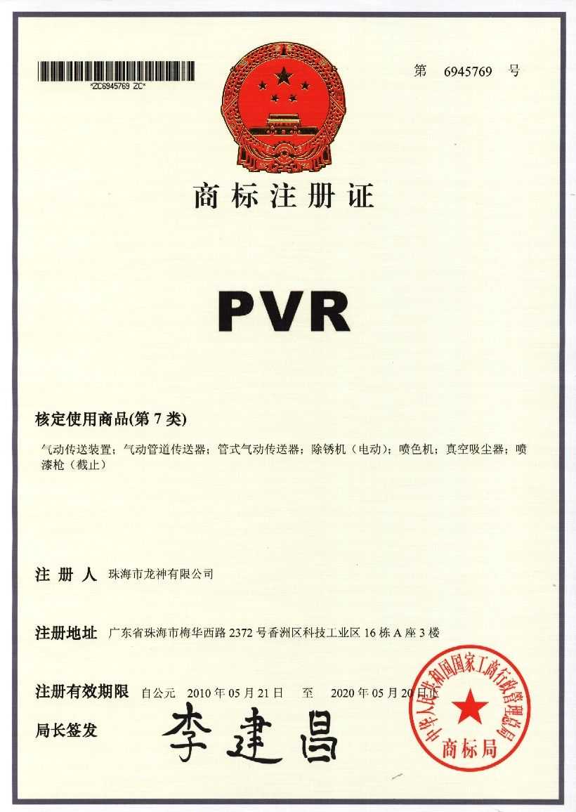 PVR商標(biāo)注冊(cè)證