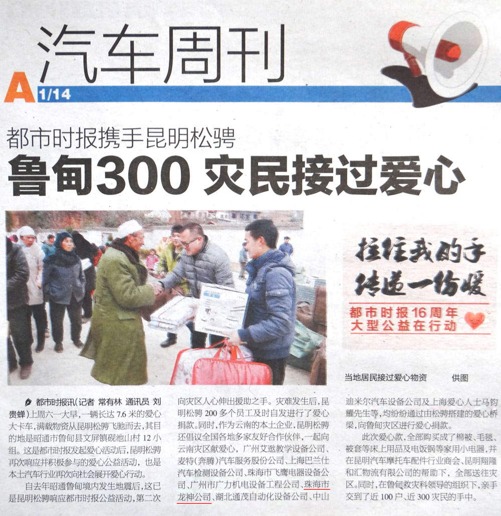“天災(zāi)無情,人間有愛”珠海龍神魯?shù)楂I(xiàn)愛心活動 千里送溫暖,呼吁大家關(guān)注共疆土正在受難的兄弟姐妹 珠海龍神獻(xiàn)愛心活動受到報(bào)刊表彰,一起將正能量傳遞下去 2015-02-11 15845